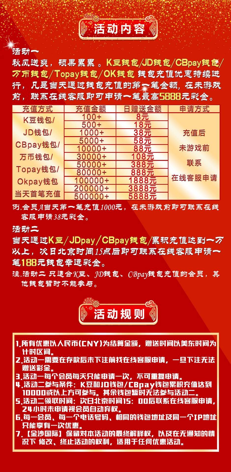 【金沙国际】保留对本活动的最终解释权,以及在无通知的情况下修改、终止活动的权利,适用于所有优惠。